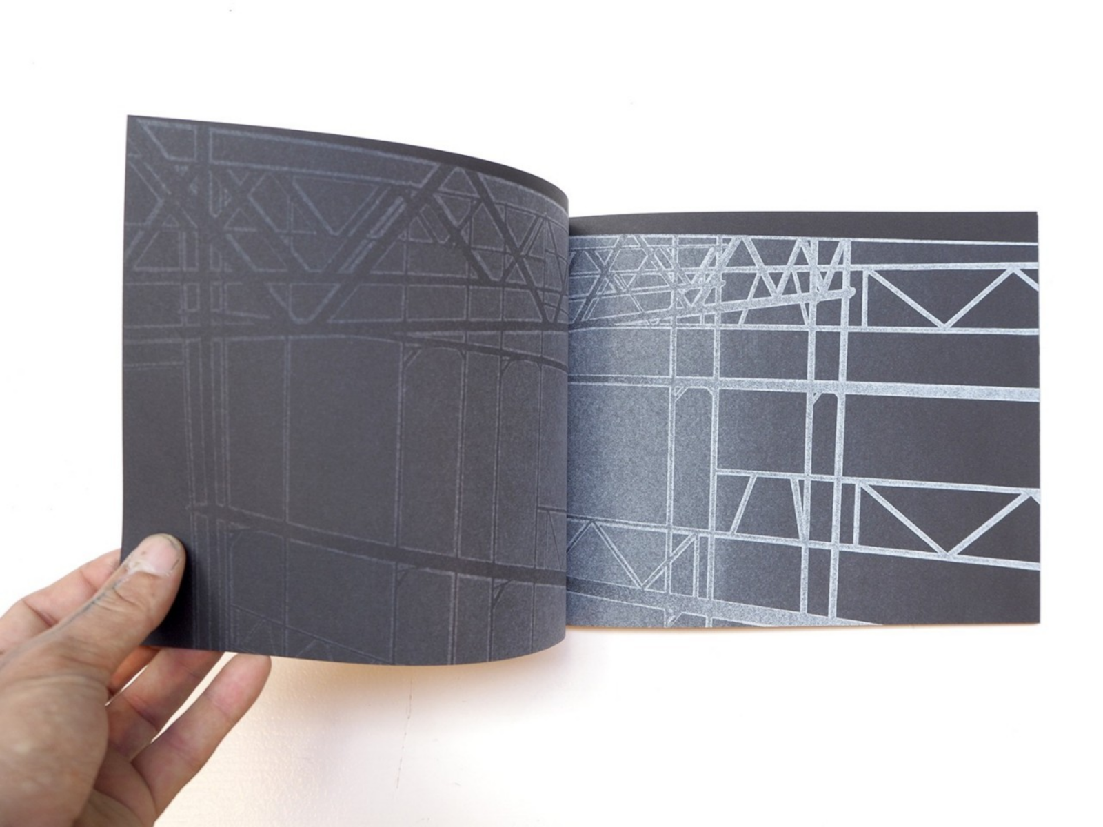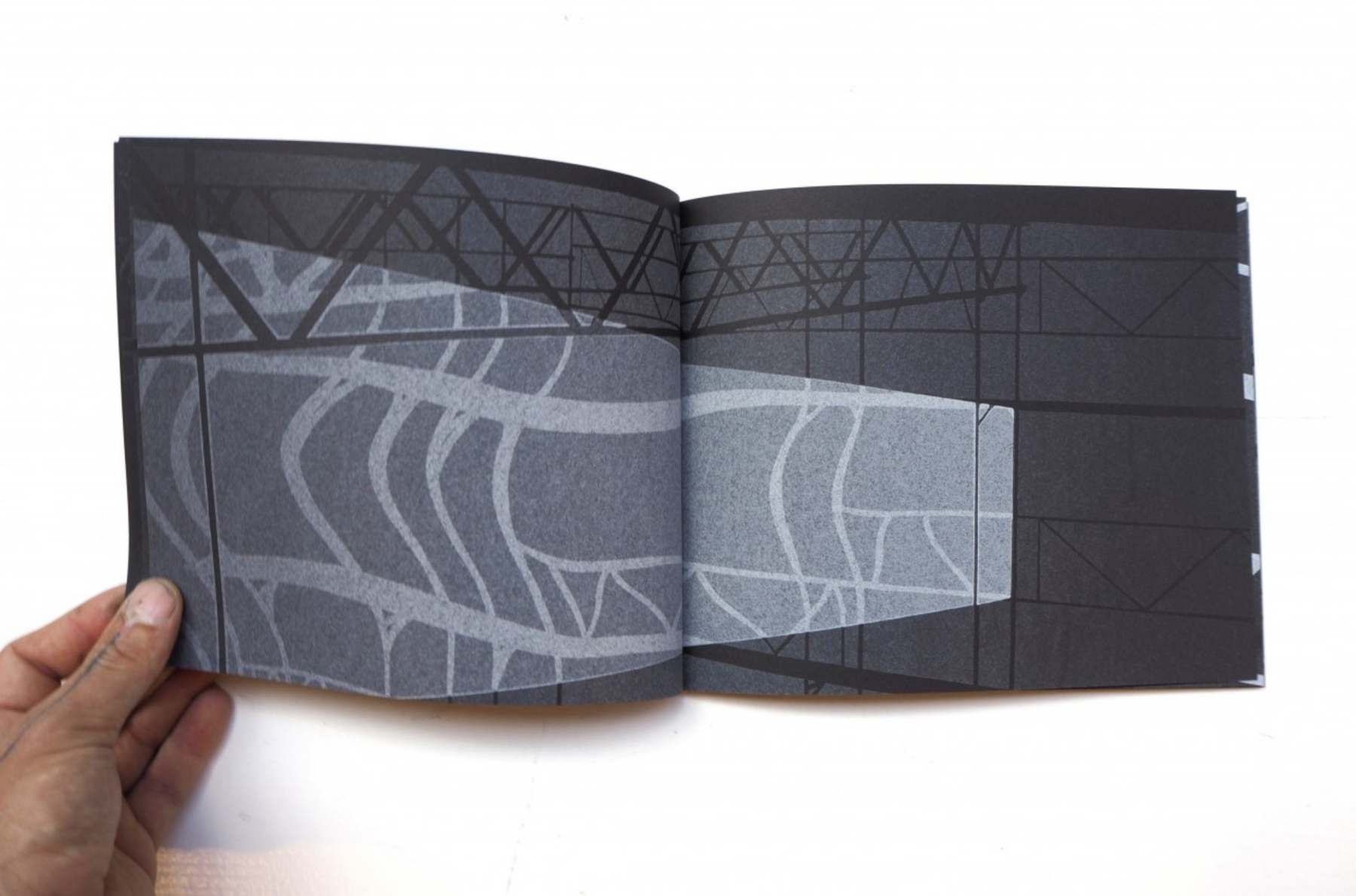 Livre en sérigraphie à deux mains. Inspirés d'architectures inachevées et de structures d'échafaudages, Jeanne et