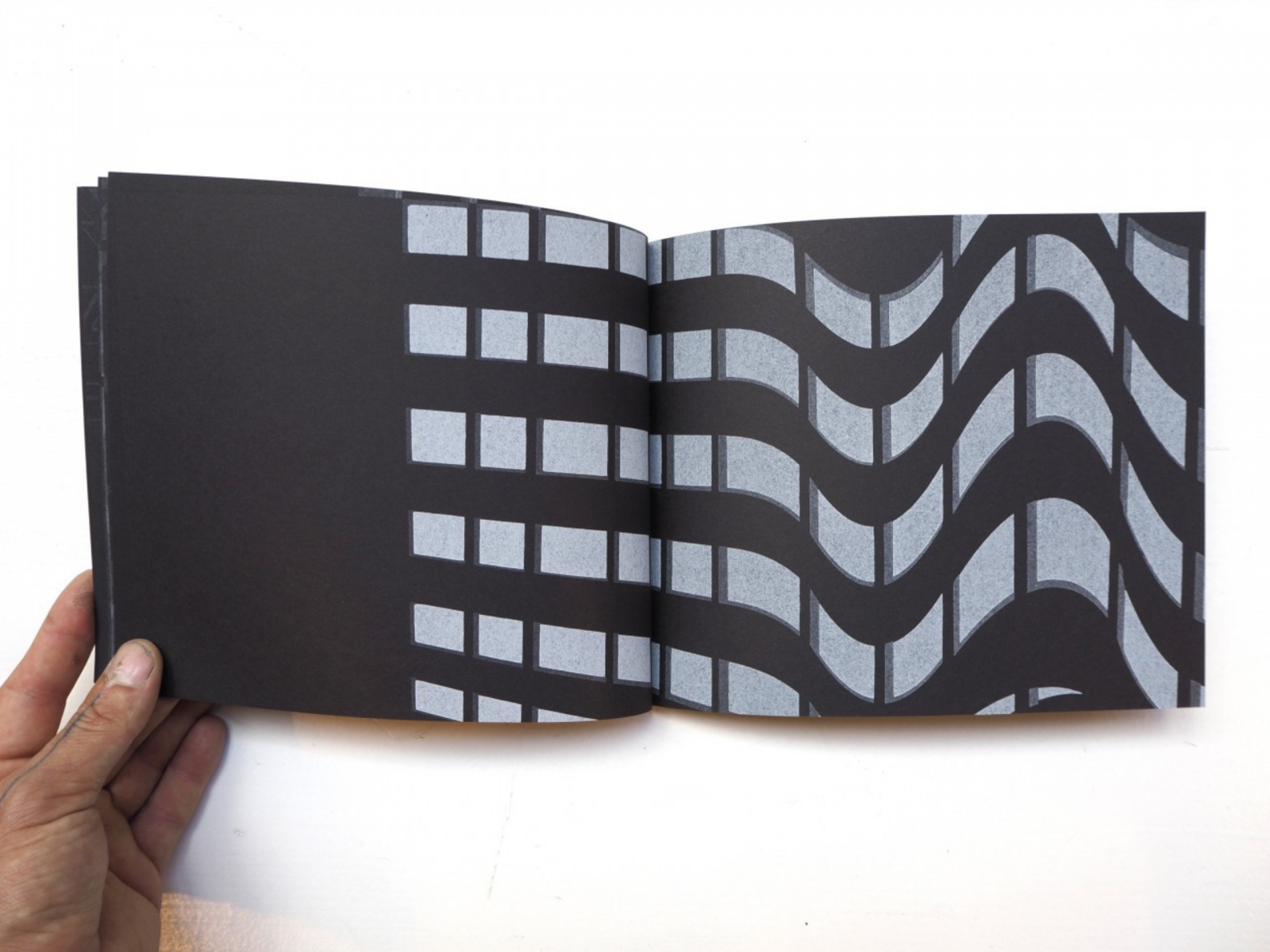 Antoine construisent un univers géométrique qui, tour à tour, se délite et s'illumine.Dessins à l'encre de chine, interventions sur photoshop, impression en sérigraphie par couches de blanc transparent sur papier noir. Dessins réalisés à l'atelier Picto. Sérigraphie et reliure réalisées à l'atelier Crache Papier