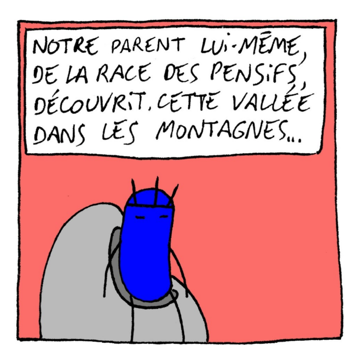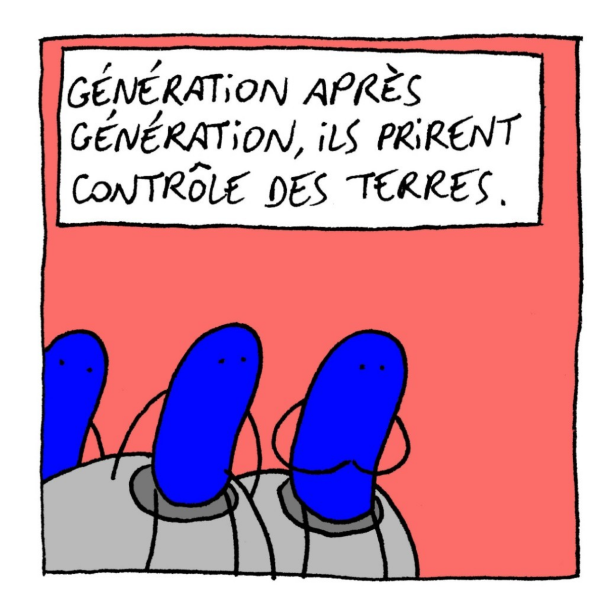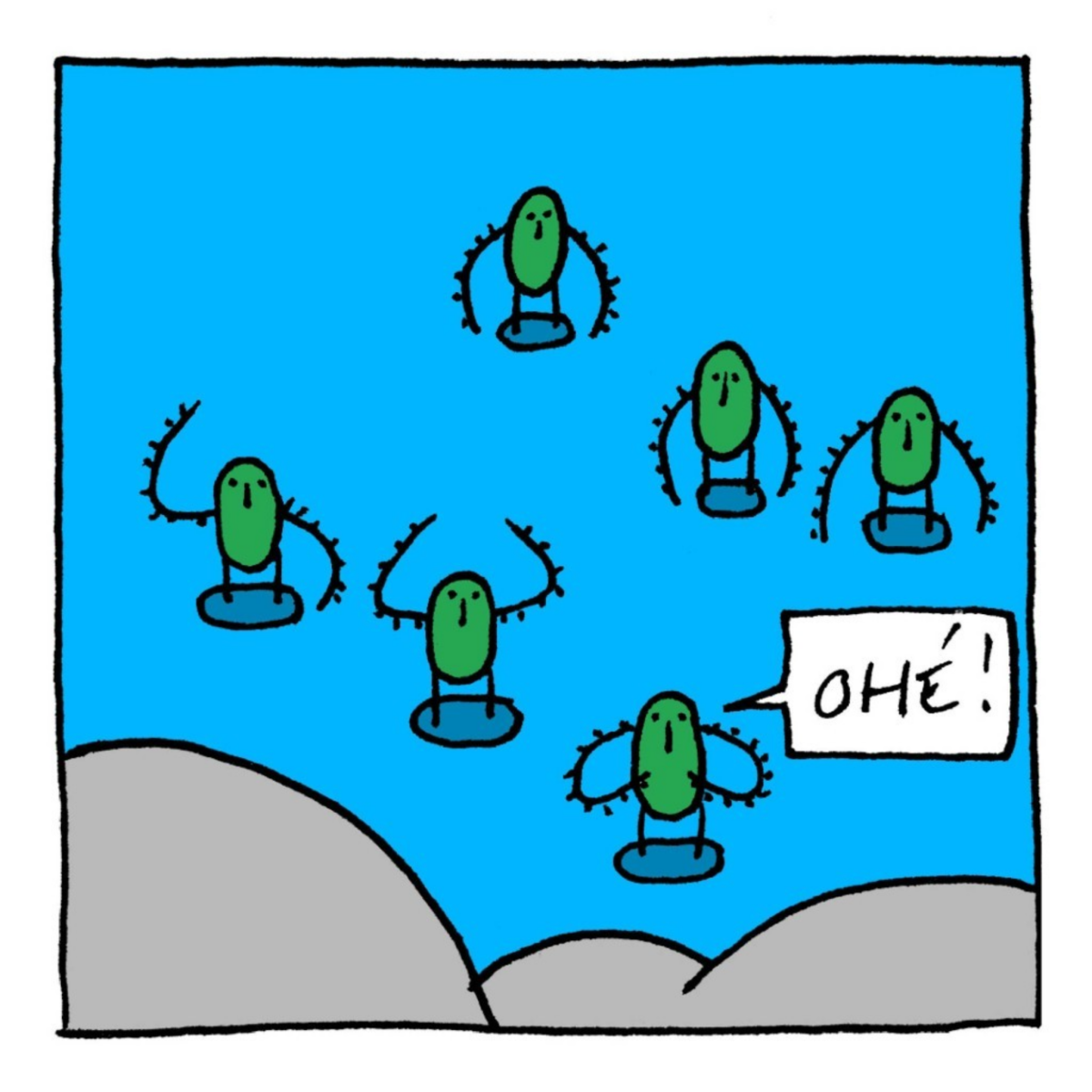Trois petites cellules découvrent une sorte de bulle, un microcosme étrange mais accueillant où la vie semble pouvoir prospérer. Mais avec cet environnement nouveau apparaissent des dangers inattendus. Pour survivre, les micro-organismes vont devoir muter, développer des caractéristiques spécifiques, explorer de nouveaux territoires et former différents groupes. Au fil des générations, des cyclopes bagarreurs, des vifs à trompe et de doux anthropophages prolifèrent ou luttent pour leur survie, au milieu de communautés mystérieuses et de civilisations primitives. Parmi elles, des caractères singuliers voient le jour. Roger Le Malformé, Aloïse l’oracle psychédélique, Conan le borgne et deux Sentinelles apparaissent sur la carte de notre minuscule univers. L’univers unicellulaire d’Alex Chauvel est aussi minimaliste que foisonnant. Dans ce monde fait de toutes petites choses et avec une économie de moyens remarquable, l’auteur nous emmène dans une contrée vivante et pleine de surprises. Une mythologie colorée qui retrace les vies de plusieurs générations de petits organismes. Quand une civilisation plus belliqueuse que les autres menace de coloniser le petit monde, l’équilibre de cet écosystème foisonnant se détraque. Très vite, les aventures de la vie deviennent une épopée pour la survie.