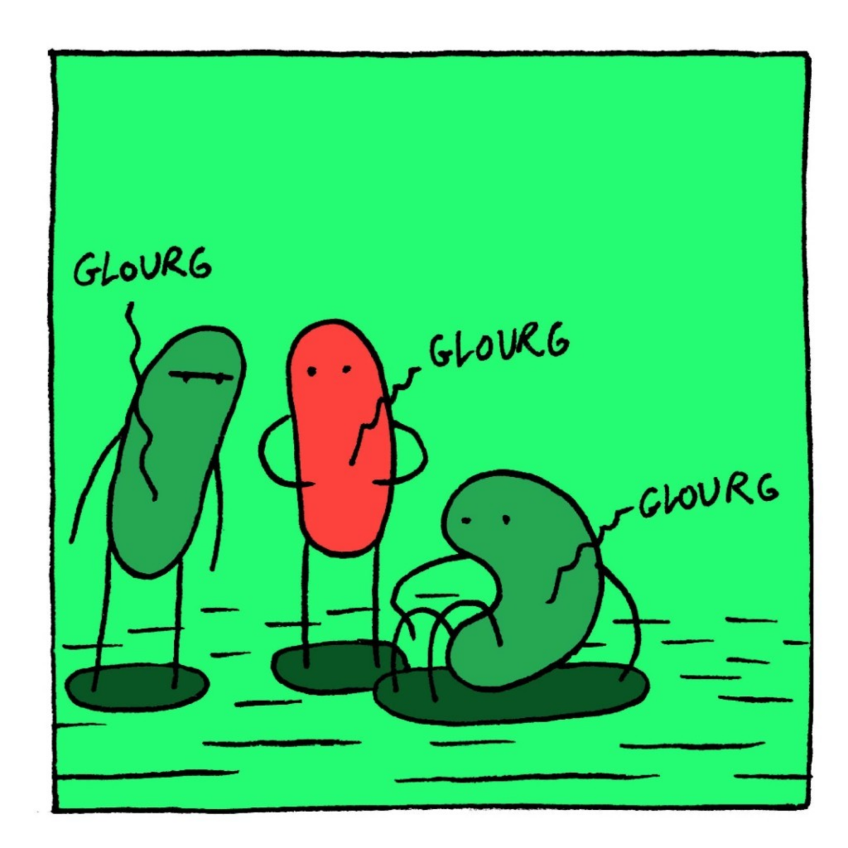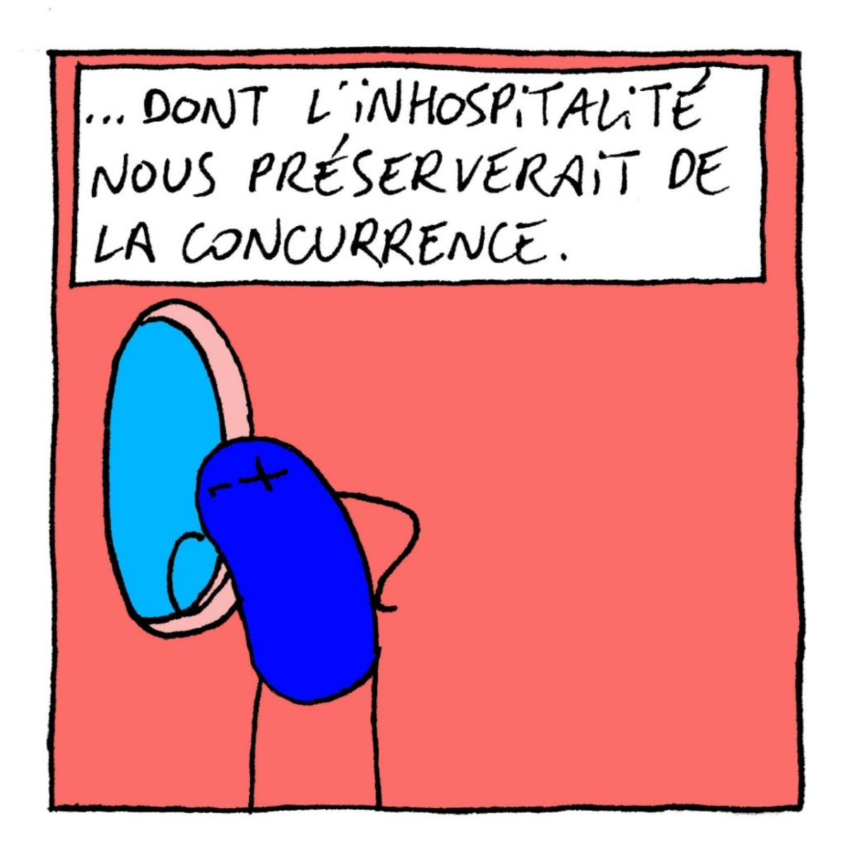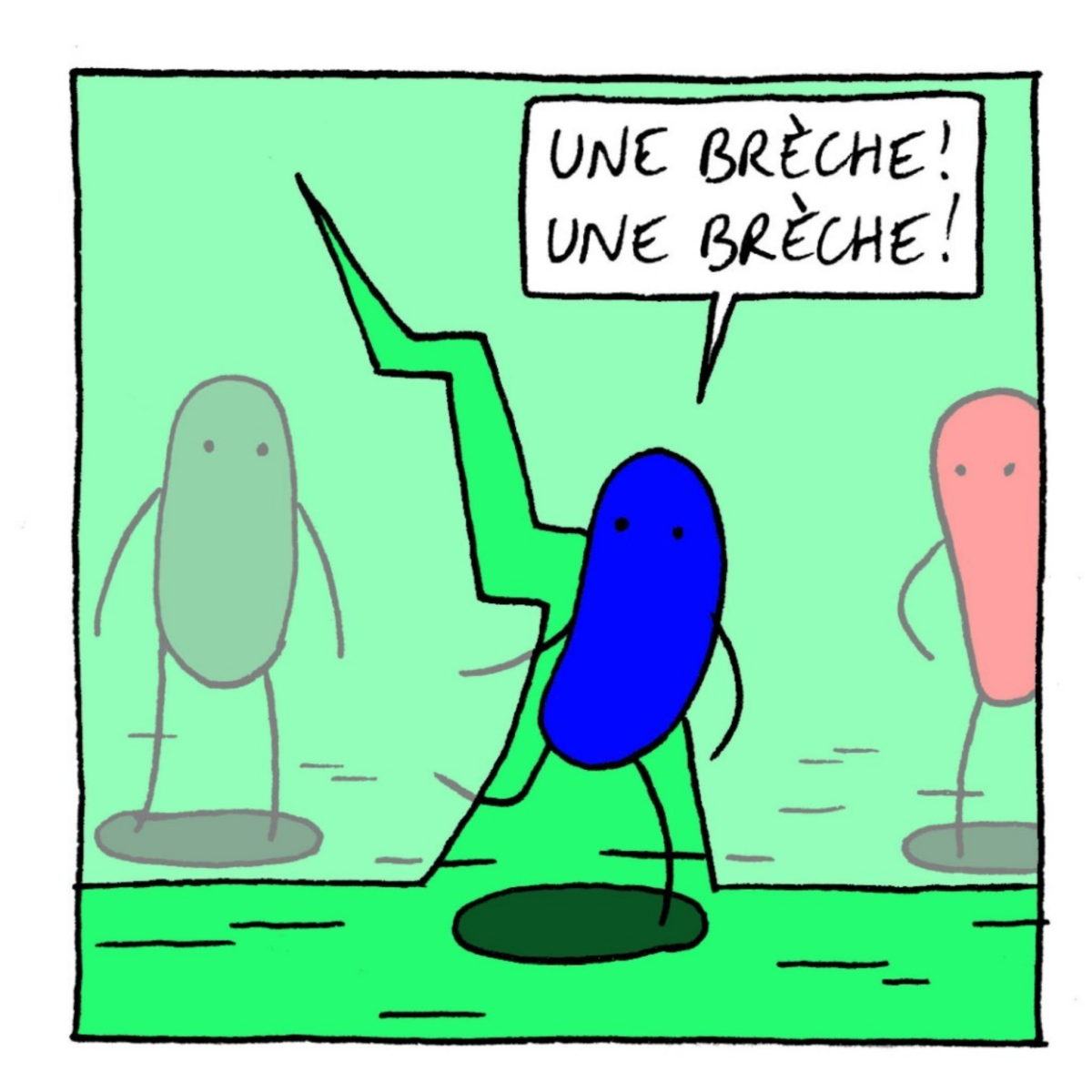 Trois petites cellules découvrent une sorte de bulle, un microcosme étrange mais accueillant où la vie semble pouvoir prospérer. Mais avec cet environnement nouveau apparaissent des dangers inattendus. Pour survivre, les micro-organismes vont devoir muter, développer des caractéristiques spécifiques, explorer de nouveaux territoires et former différents groupes. Au fil des générations, des cyclopes bagarreurs, des vifs à trompe et de doux anthropophages prolifèrent ou luttent pour leur survie, au milieu de communautés mystérieuses et de civilisations primitives. Parmi elles, des caractères singuliers voient le jour. Roger Le Malformé, Aloïse l’oracle psychédélique, Conan le borgne et deux Sentinelles apparaissent sur la carte de notre minuscule univers. L’univers unicellulaire d’Alex Chauvel est aussi minimaliste que foisonnant. Dans ce monde fait de toutes petites choses et avec une économie de moyens remarquable, l’auteur nous emmène dans une contrée vivante et pleine de surprises. Une mythologie colorée qui retrace les vies de plusieurs générations de petits organismes. Quand une civilisation plus belliqueuse que les autres menace de coloniser le petit monde, l’équilibre de cet écosystème foisonnant se détraque. Très vite, les aventures de la vie deviennent une épopée pour la survie.