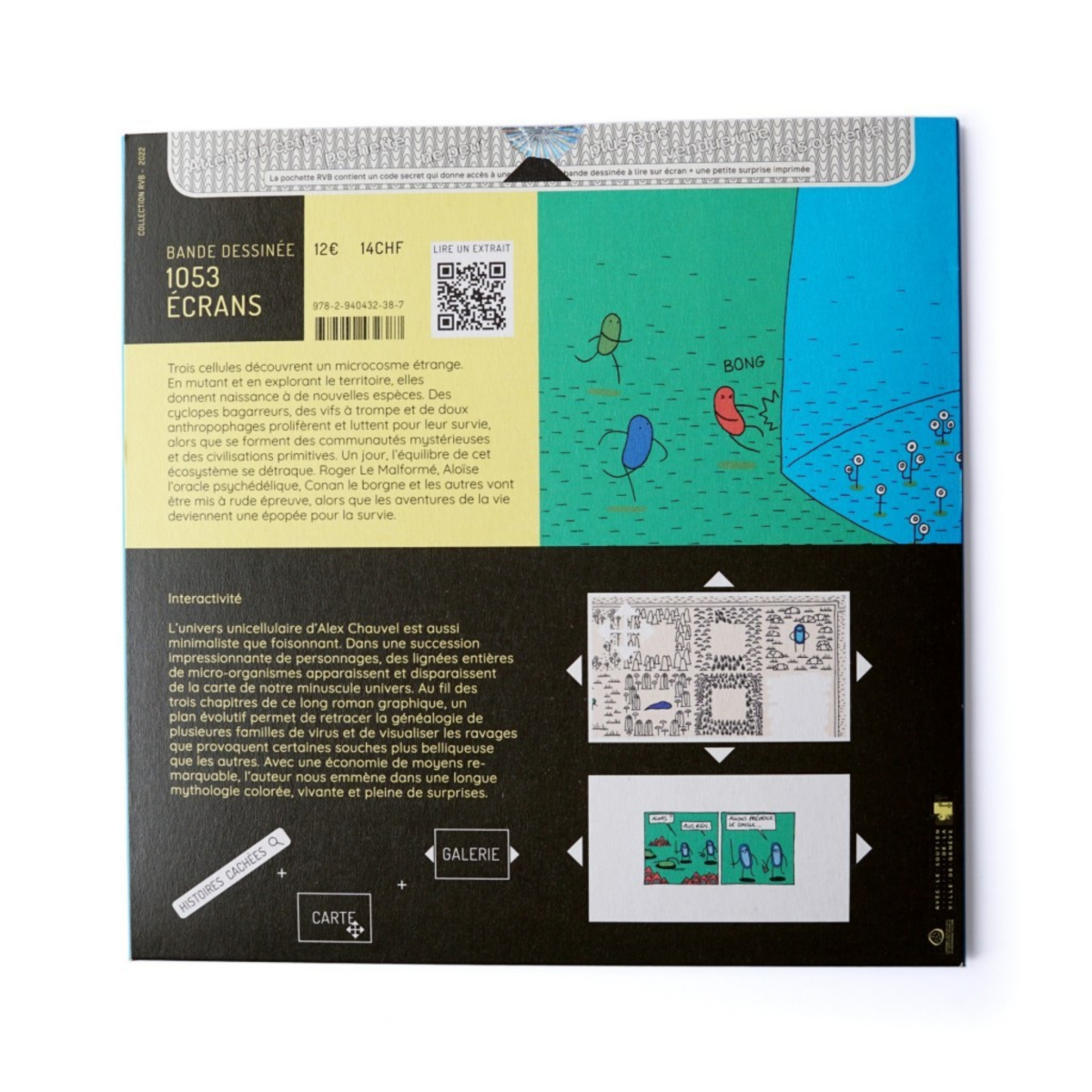 La Collection RVB publie des bande dessinées numériques riches et foisonnantes. Tous les ouvrages sont disponibles en version 100% numérique ou comme ici avec un supplément papier. Dans cette pochette vous trouverez un code à usage unique qui vous permet de lire, relire et prêter l'ouvrage qui figure en couverture. En plus de ça vous découvrirez à chaque fois des petits cadeaux imprimés créés exclusivement pour cette bande dessinée.