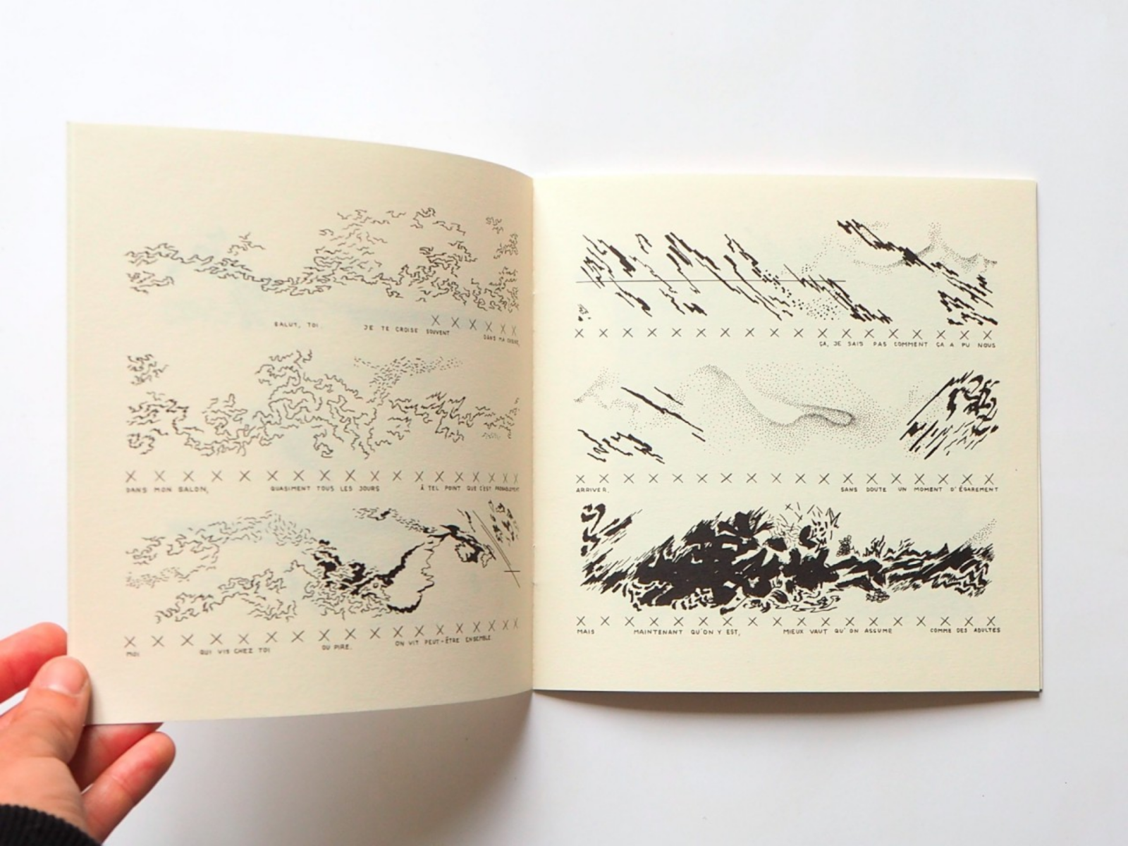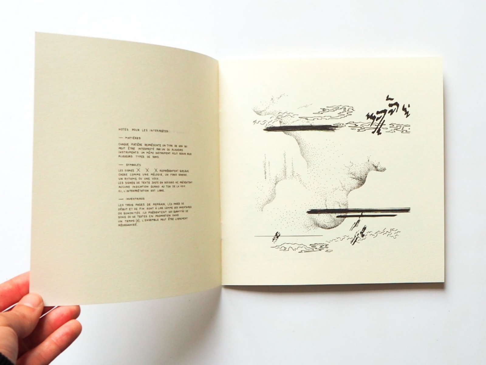 Une série de partitions graphiques a ainsi été réalisée par cinq des membres d’Hécatombe, puis a été interprétée et enregistrée par les cinq musiciens de l’Ensemble Batida. Chaque partition a ainsi été imprimée dans un livret incluant un flexi-disc. Les cinq livrets sont vernis à intervalles réguliers et donnent lieu à une série de concerts à travers la Suisse et l’Europe.