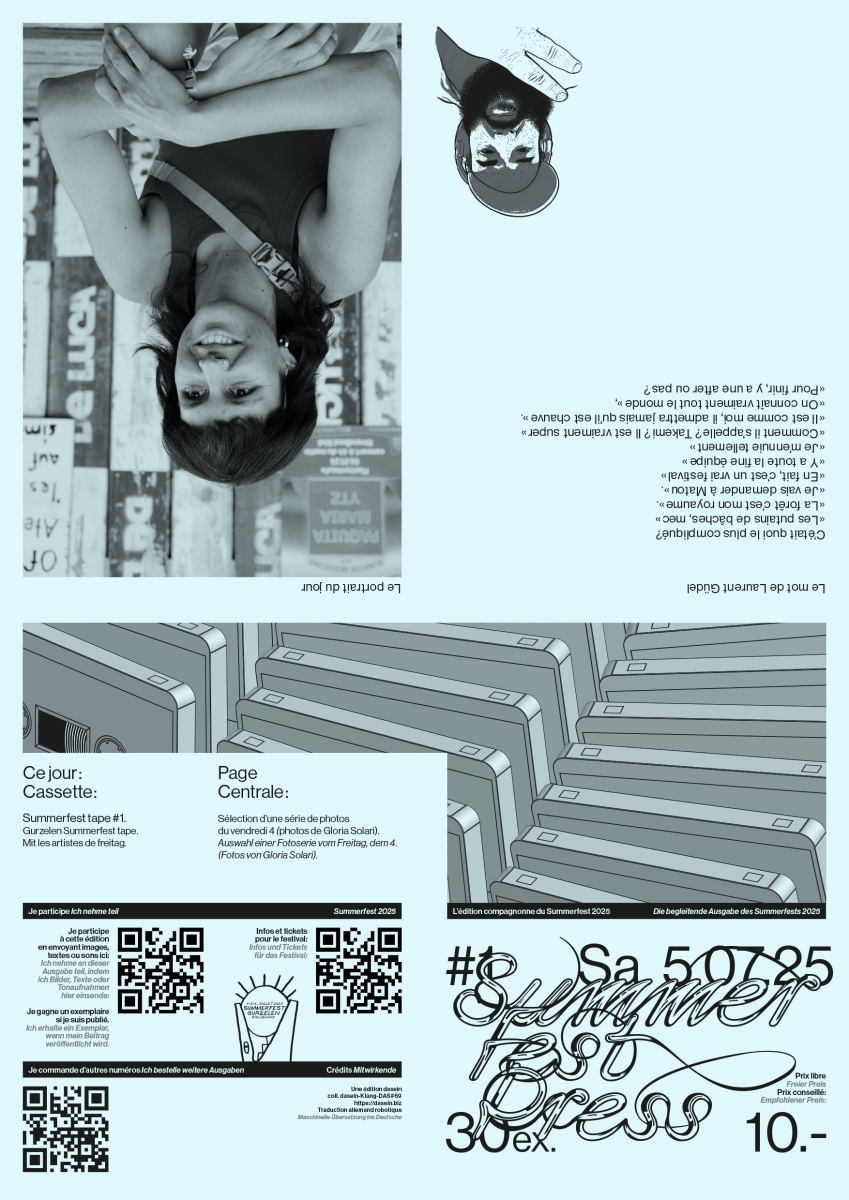 À l’occasion du Summerfest 2025 (4-5-6/07), festival de musique annuel à Biel/bienne, nous avons publié un fanzine par jour accompagné d’une cassette audio.